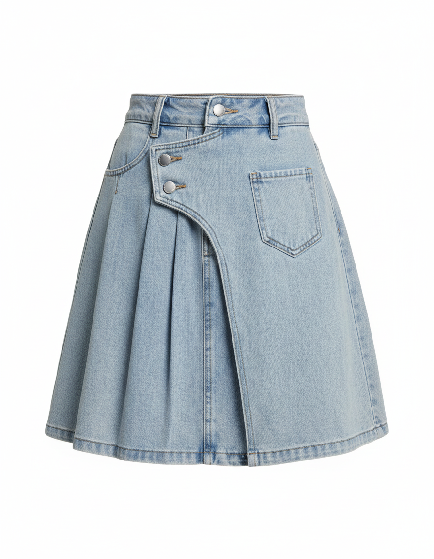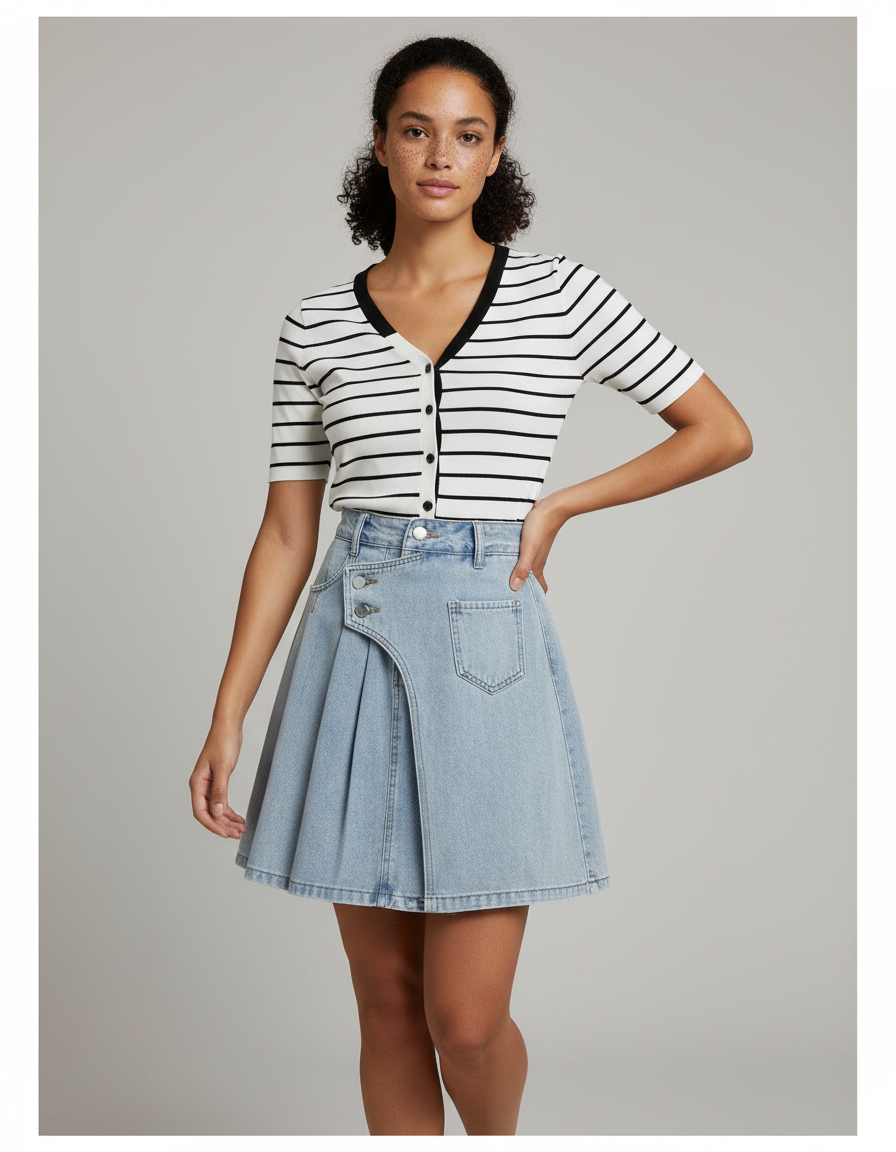 Usage de la Jupe Courte en Denim à Effet Portefeuille - Jupe Effet Portefeuille