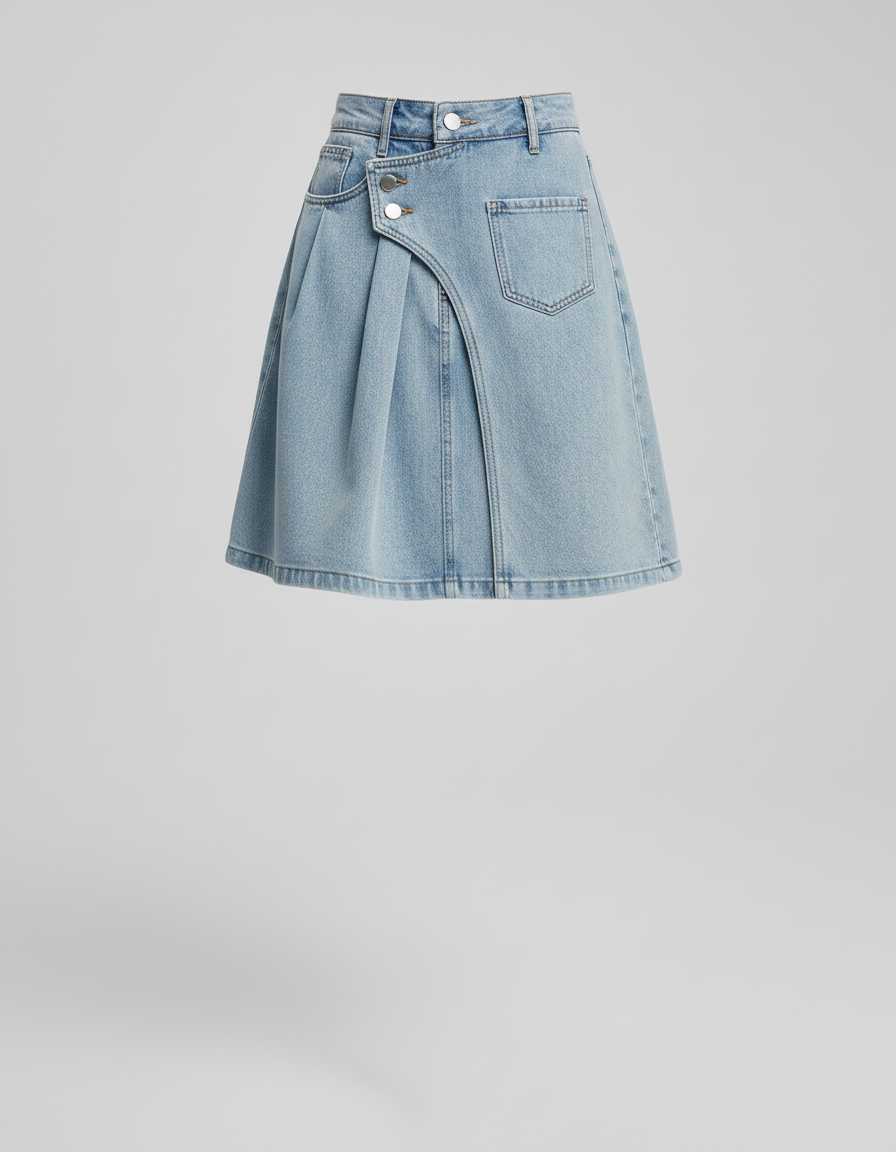 Jupe En Jean Plissée Asymétrique Jupe Portefeuille